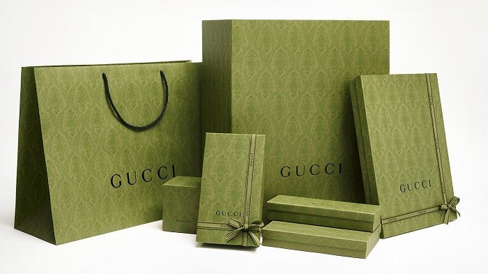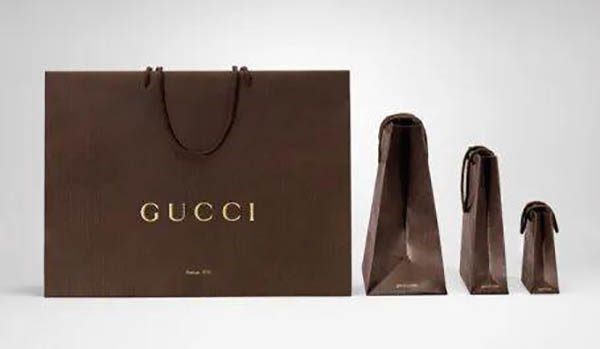 Gucci đã sử dụng một chiếc túi bao bì màu nâu được trang trí bằng logo vàng trước khi giám đốc sáng tạo Alessandro Michele nhận chức
