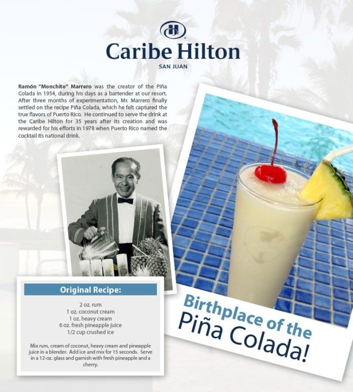 Thức uống nổi tiếng piña colada được phục vụ tại khách sạn Hilton